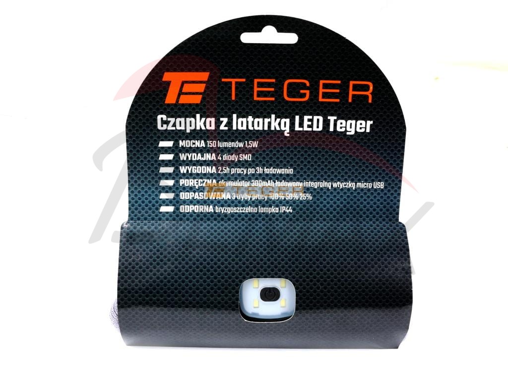 Czapka z latarką LED Teger ładowana